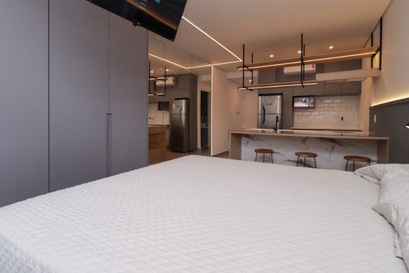 Studio MOBILIADO para alugar. Dormitório, cozinha e banheiro. Sem vaga de garagem! OBS: Valor do aluguel já está incluso o IPTU. Agende sua visita!