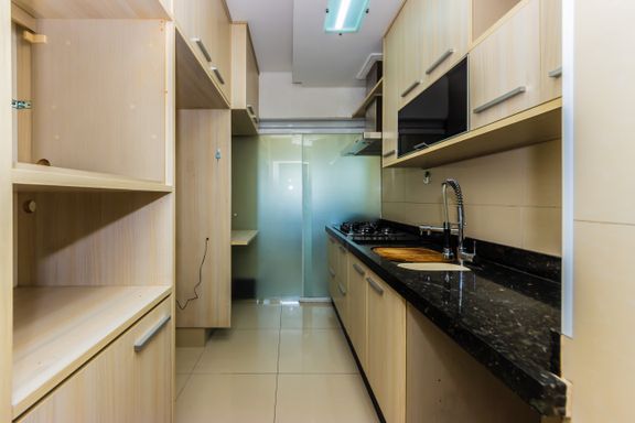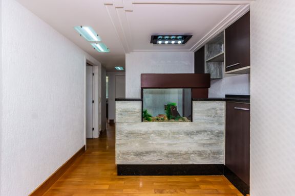 São 108 m² bem distribuídos em 4 dormitórios, sendo 1 suíte com hidro, sala para 3 ambientes + lavabo, varanda gourmet com churrasqueira elétrica, cozinha espaçosa, área de serviço, 3 banheiros no total, 2 vagas de garagem, andar alto com vista livre, muitos armários planejados em todos os cômodos e em excelente estado, aquário grande na sala, trazendo charme e personalidade.