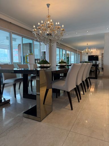 O imóvel conta com 4 dormitórios, todos suítes, sala ampla para três ambientes, além de uma varanda gourmet espaçosa e totalmente equipada, perfeita para receber os amigos e familiares. São 6 banheiros, dependência de empregada, área de serviço funcional e excelente distribuição dos ambientes.