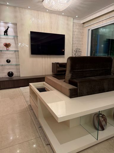 Dispõe ainda de 5 vagas de garagem cobertas e depósito privativo. Localizado em andar alto, é um apartamento arejado, ensolarado, repleto de armários planejados e finamente decorado.