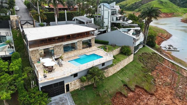 Descubra um refúgio único em Igaratá: esta imponente casa em condomínio alia sofisticação e contato direto com a natureza, oferecendo acesso privativo à represa e garagem de barco