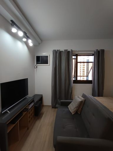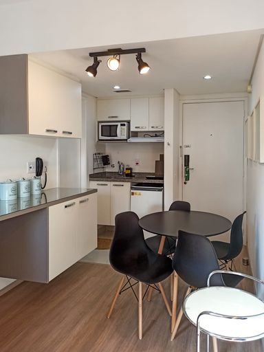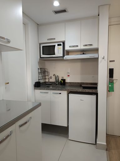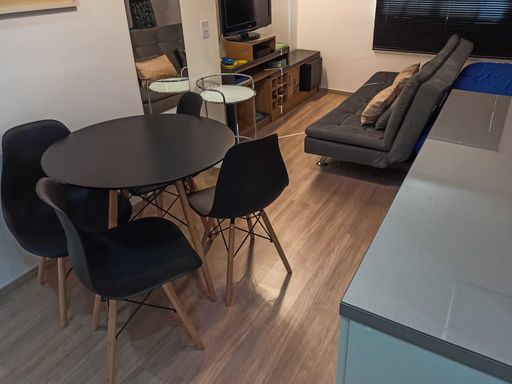Belo flat a venda na região de Moema Pássaros, 24 M², 1 dormitório, cozinha, 1 banheiro com box, 1 vaga de garagem. Imóvel totalmente mobiliado pronto para morar, fica em andar alto com vista livre, reformado com piso novo, armários em ótimo estado, moveis soltos como cama de casal com box baú, sofá cama, mesa, eletrodomésticos como frigobar, cooktop, micro-ondas, coifa, Tv a cabo, internet.