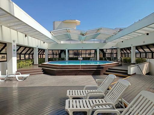 Oportunidade única! Edifício possui portaria 24 horas, piscina na cobertura com teto retrátil, sauna, academia, lavanderia (pago pelo uso), mercadinho, quadra de squash, churrasqueira, serviço de manobrista, salão de convenções e eventos.