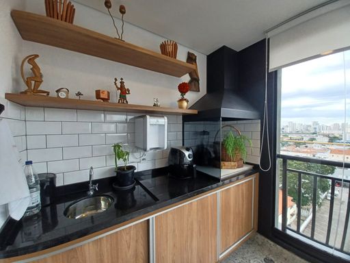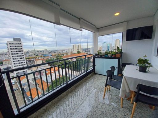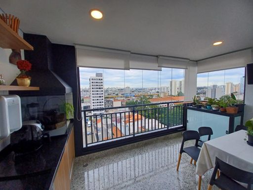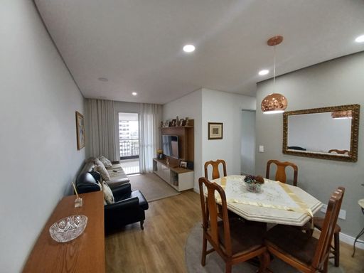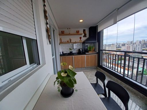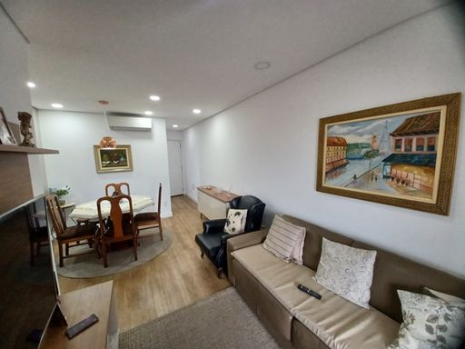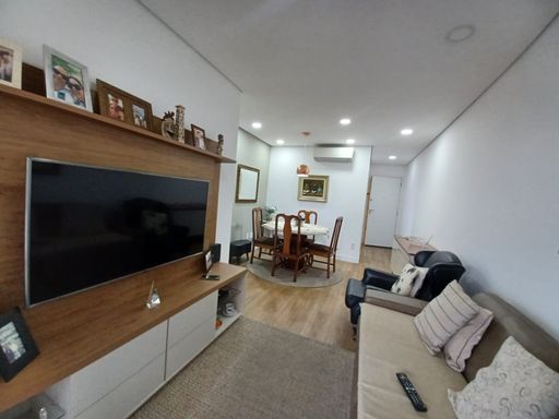 Ampla sala para dois ambientes, integrada a uma charmosa varanda gourmet envidraçada, perfeita para receber amigos e família