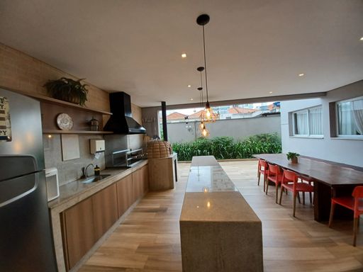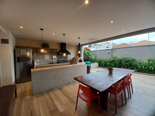 Salão de festas elegante, espaço gourmet, churrasqueira e forno de pizza