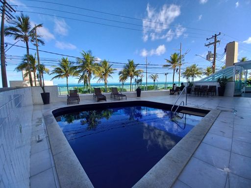 Piscina de frente para o mar, academia e sala de ginástica, salão de festas, sala de jogos, brinquedoteca, segurança 24 horas.